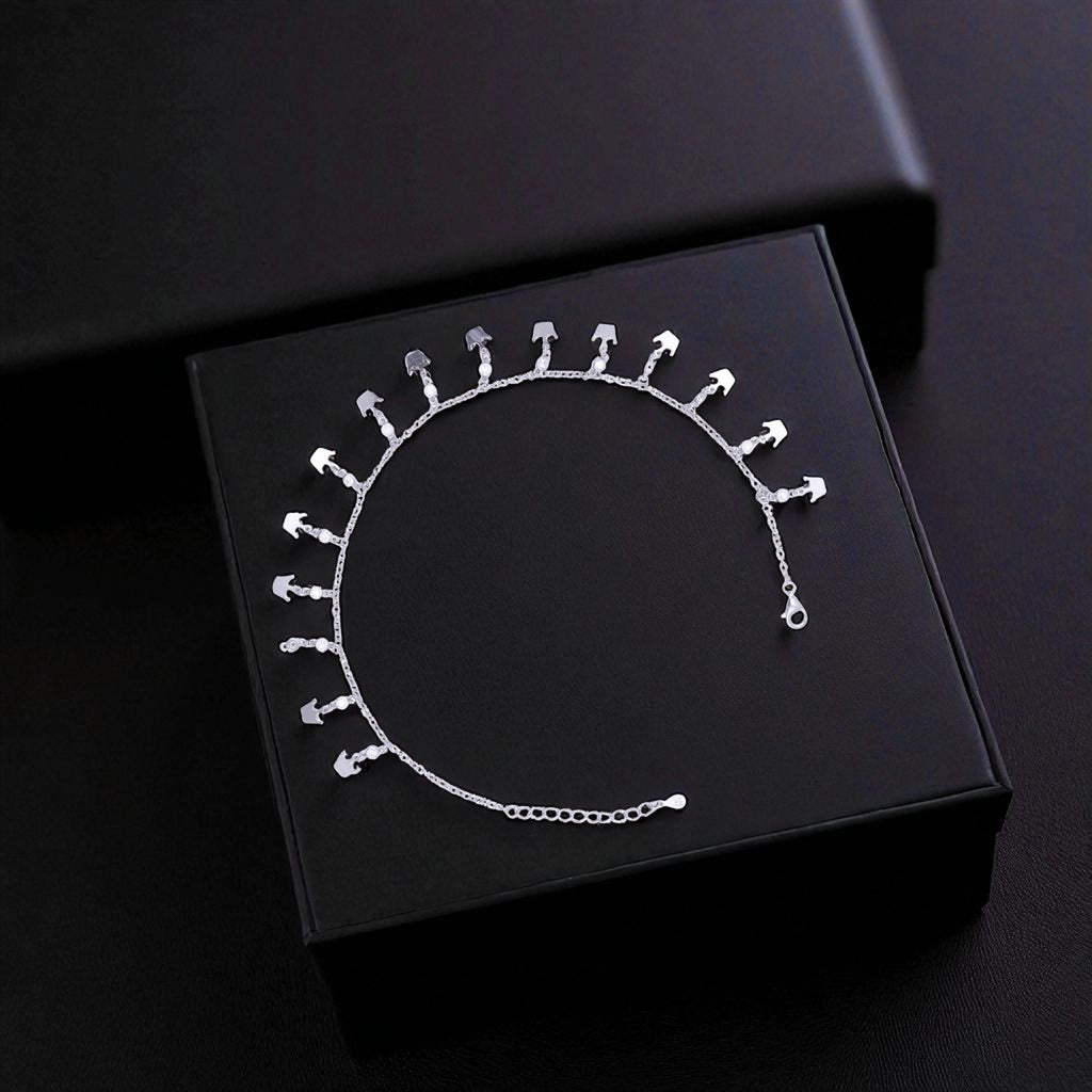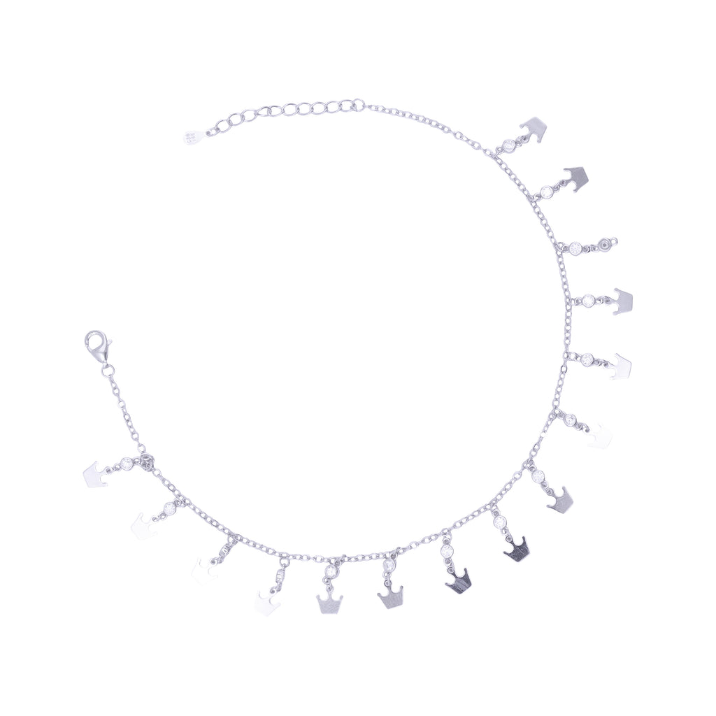 Design: Finely handcrafted from pure 925 silver, these anklets feature a sleek chain adorned with multiple dainty crown-shaped charms. Each charm sways gently, adding a hint of sparkle and regal flair. The adjustable clasp ensures a snug, comfortable fit, making it perfect for everyday elegance or special moments.