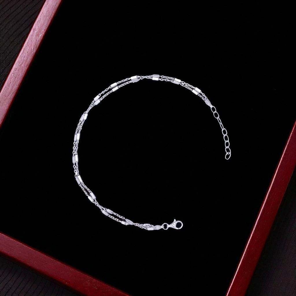 Crafted from premium 925 sterling silver, this anklet features a refined double-chain style that gently sparkles with each step. Lightweight and elegant, it’s perfect for daily wear or layering with other pieces for a chic, stacked look.