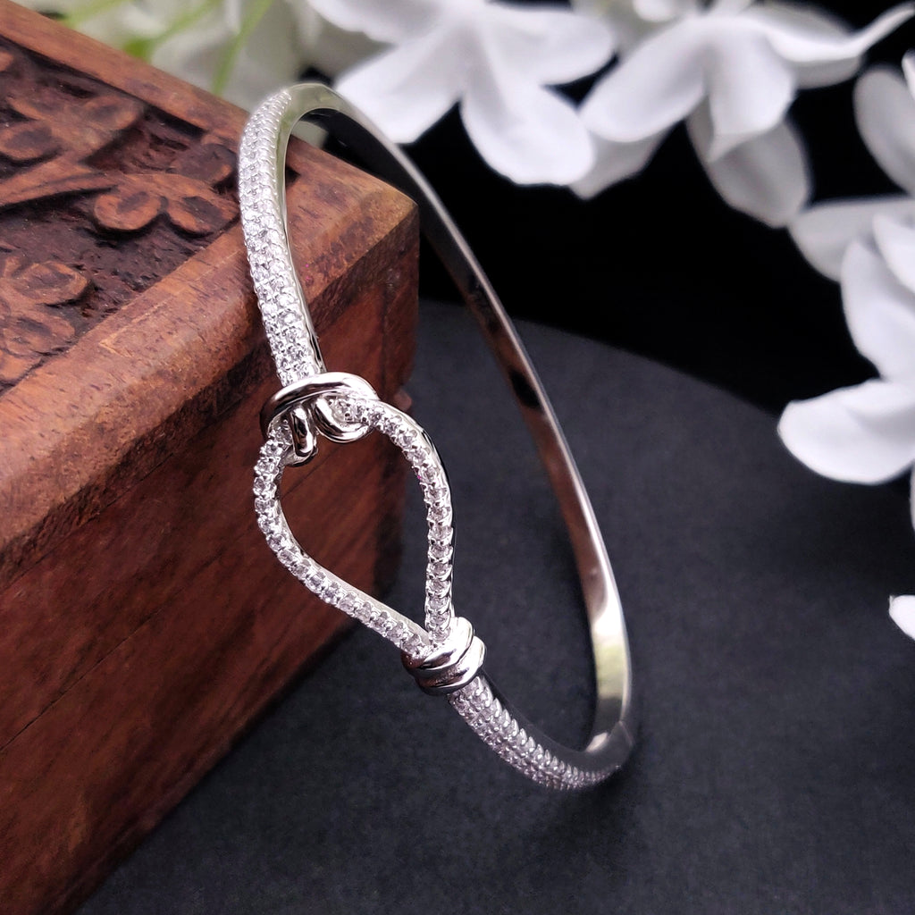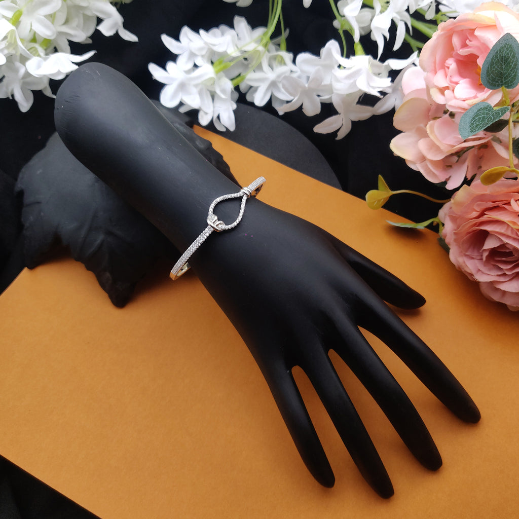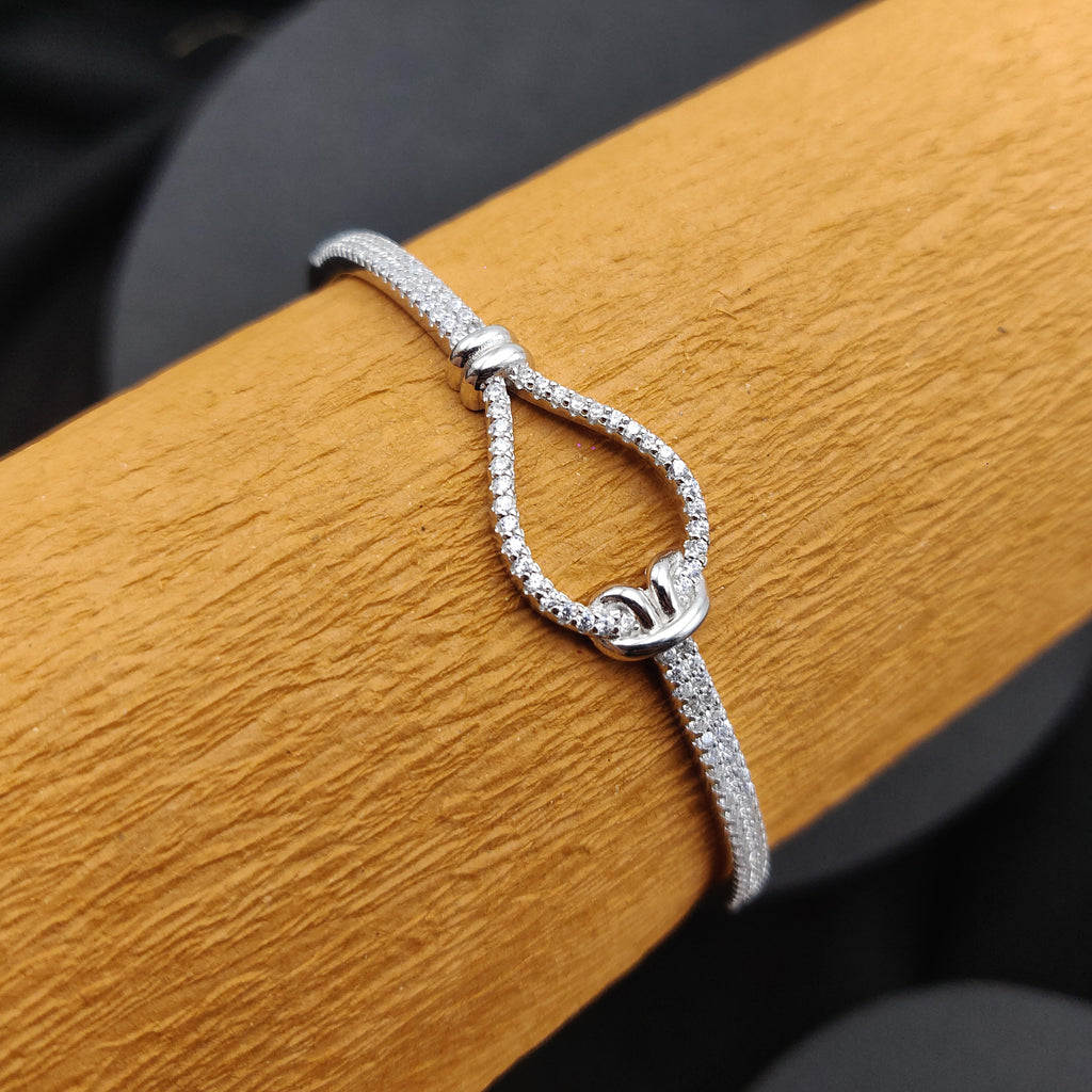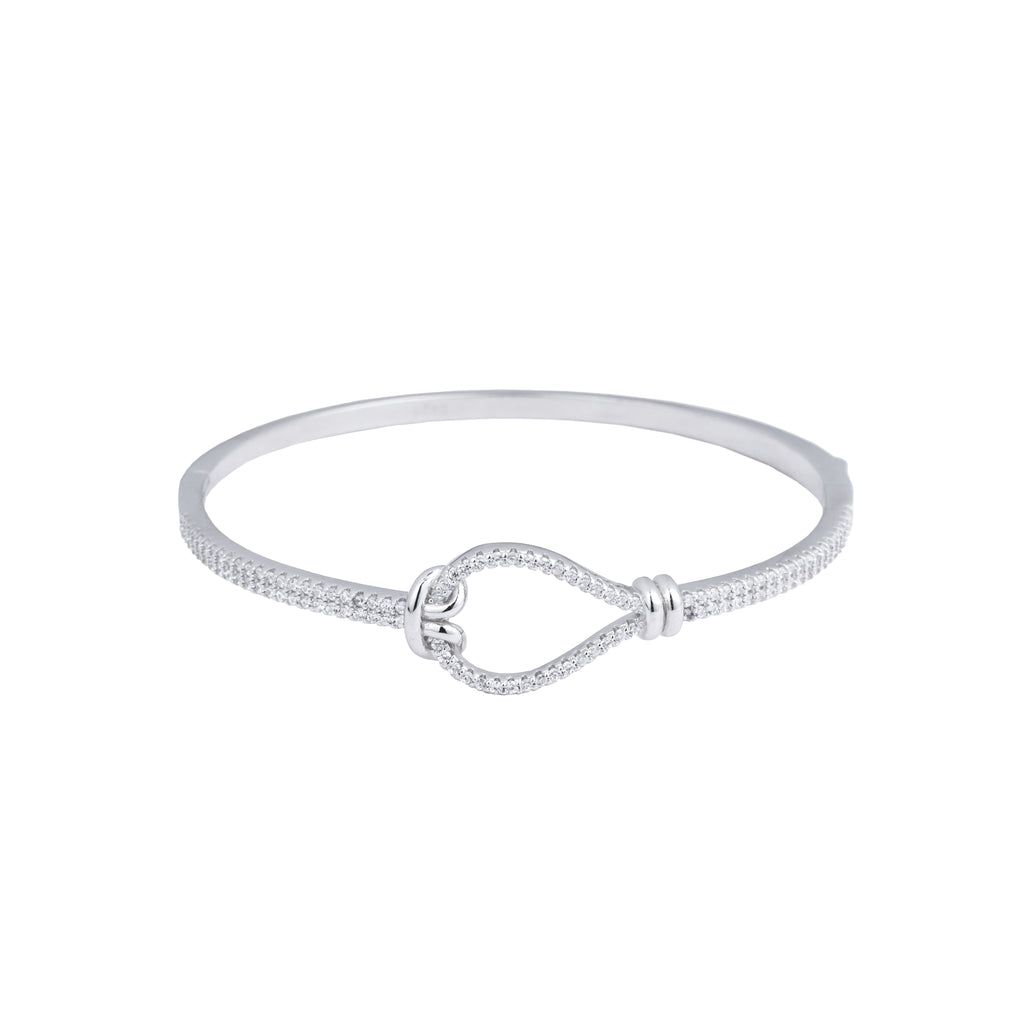 Elegant yet bold, this solid hinged bangle is crafted from 925 Pure Sterling Silver with a high-shine finish and tiny crystal detailing for a subtle sparkle. Its sleek structure, secure clasp, and skin-friendly design make it perfect for daily wear or light formal occasions. Drop design in the center of the bangle.