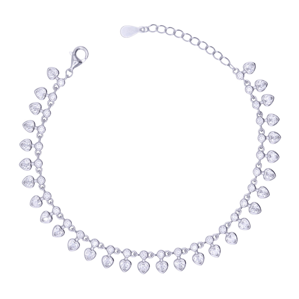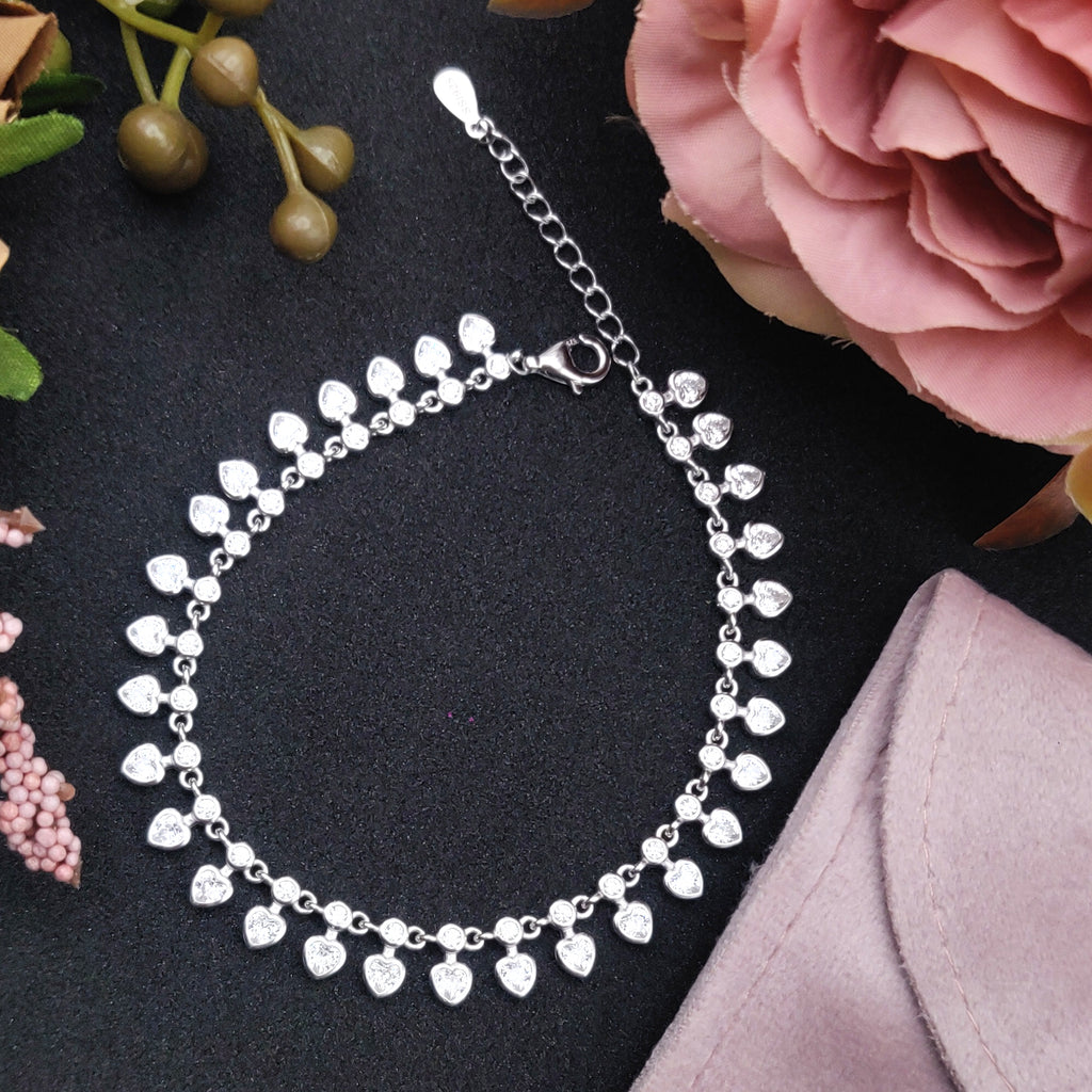 Design: A stylish new silver bracelet is designed with high-quality material. Its design is covered with tiny zircon crystals, an adjustable or expandable chain. A beautiful finish of the bracelet with a lobster clasp. Tiny chain designable hearts are beautifully fitted in the bracelet to give you extra shine and elegance.