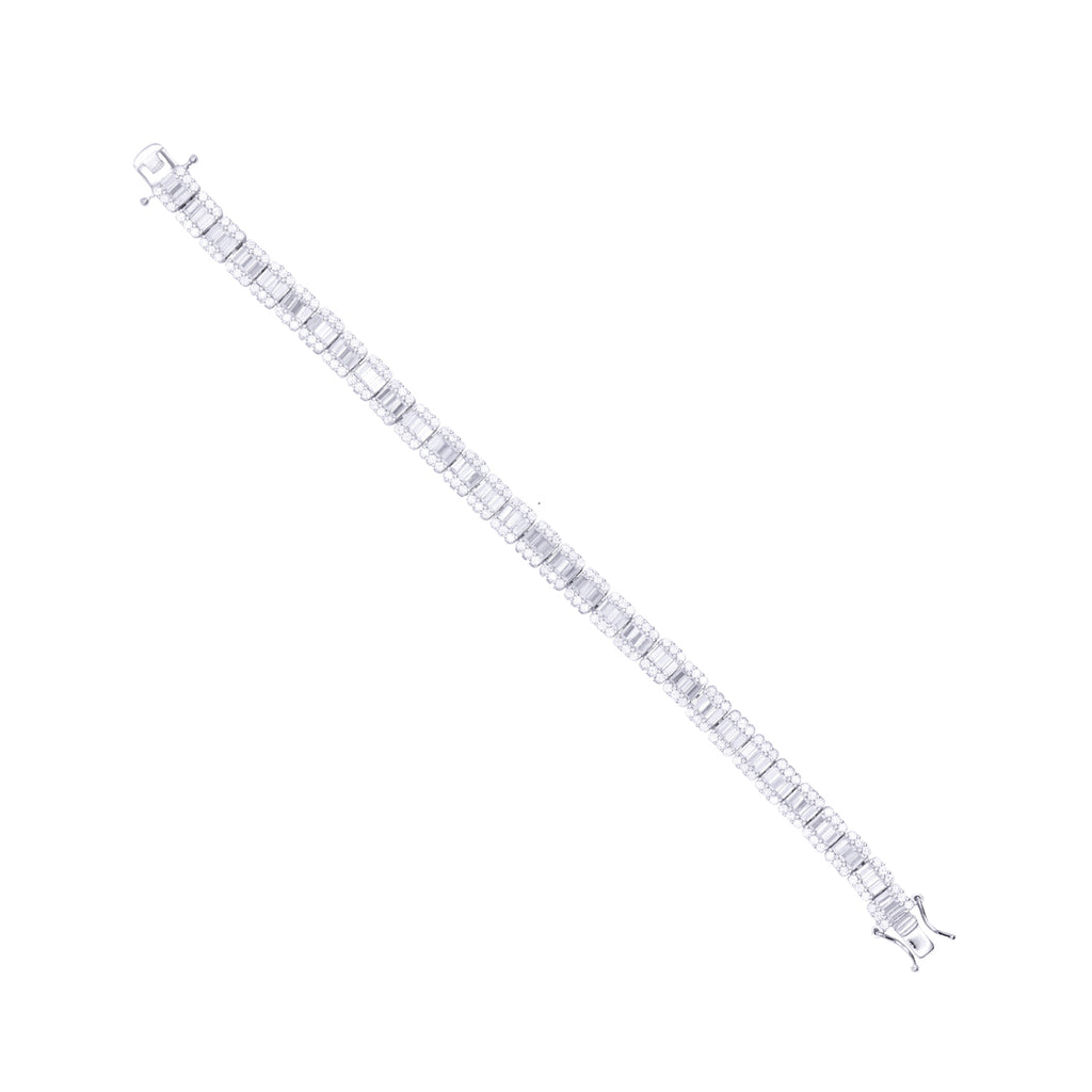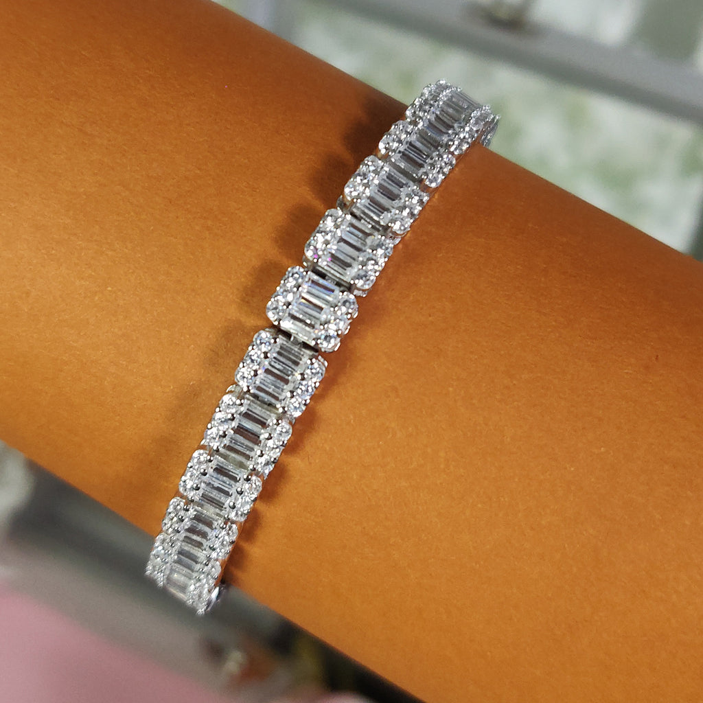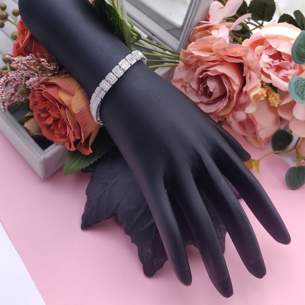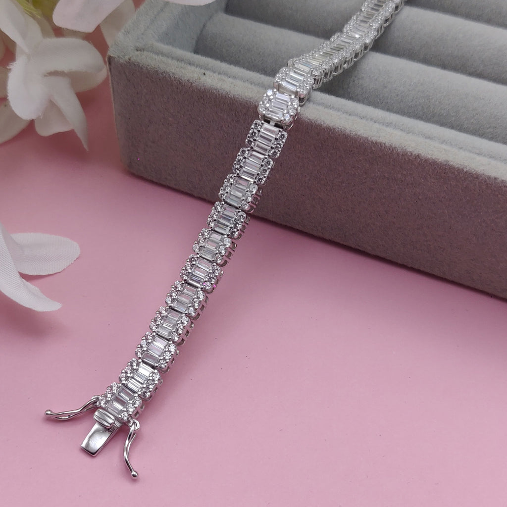 925 Silver refined quality of this shiny crystal bracelet. Take a new step in making this shiny bracelet yours. Shop the latest version of this lovely crystal bracelet. This lovable, shiny, and crystal clear bracelet is designed for women and girls. Fashion-forward daily wear items with skin care protection. Tarnish-free item with combined zircon stones.