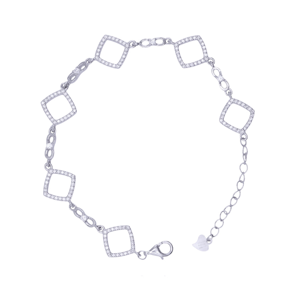 Perfectly balanced between subtle sparkle and modern charm, this bracelet is lightweight, adjustable, and designed for daily wear. Its rhodium-coated finish ensures lasting shine and resistance to tarnish, making it an effortless addition to your jewelry collection.
