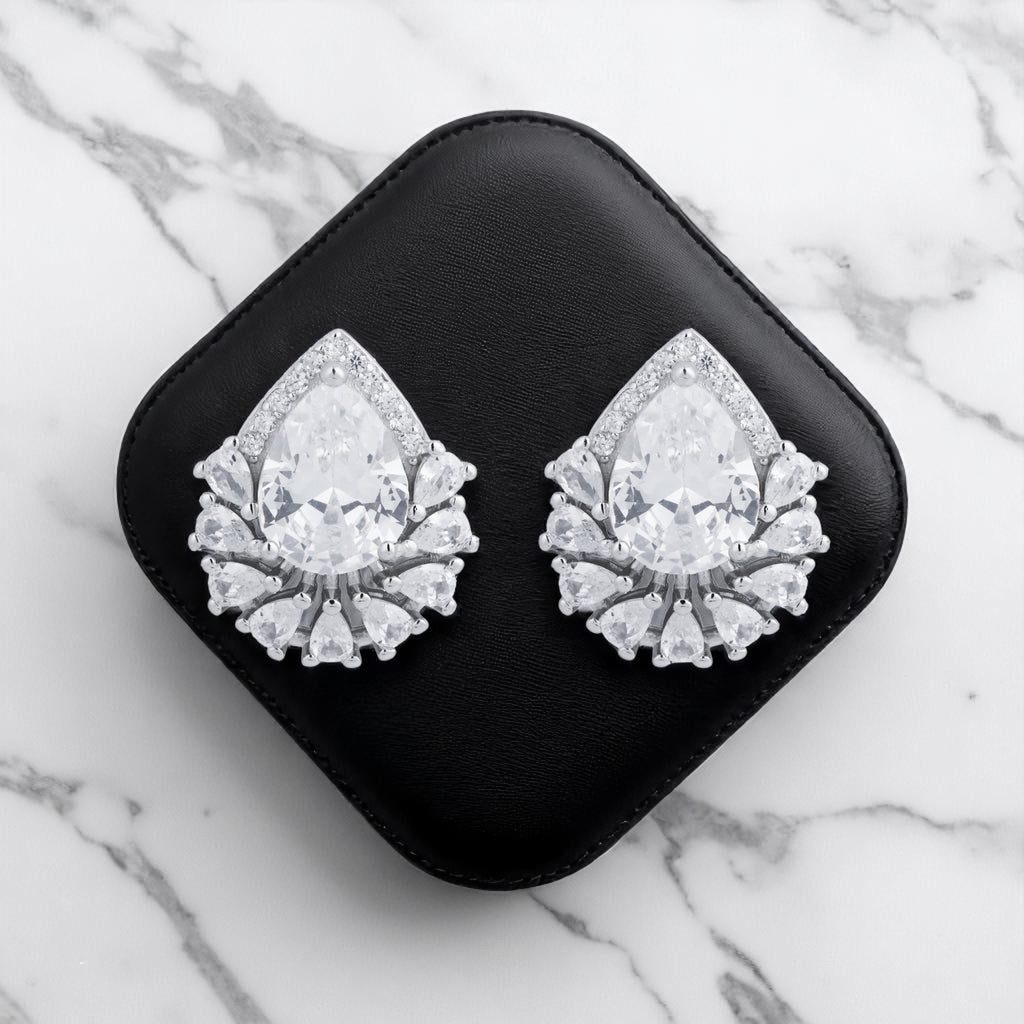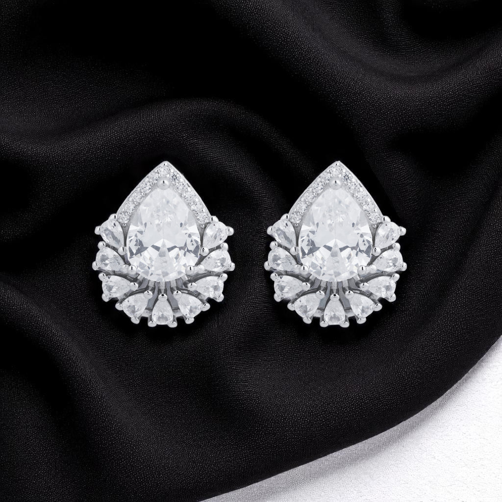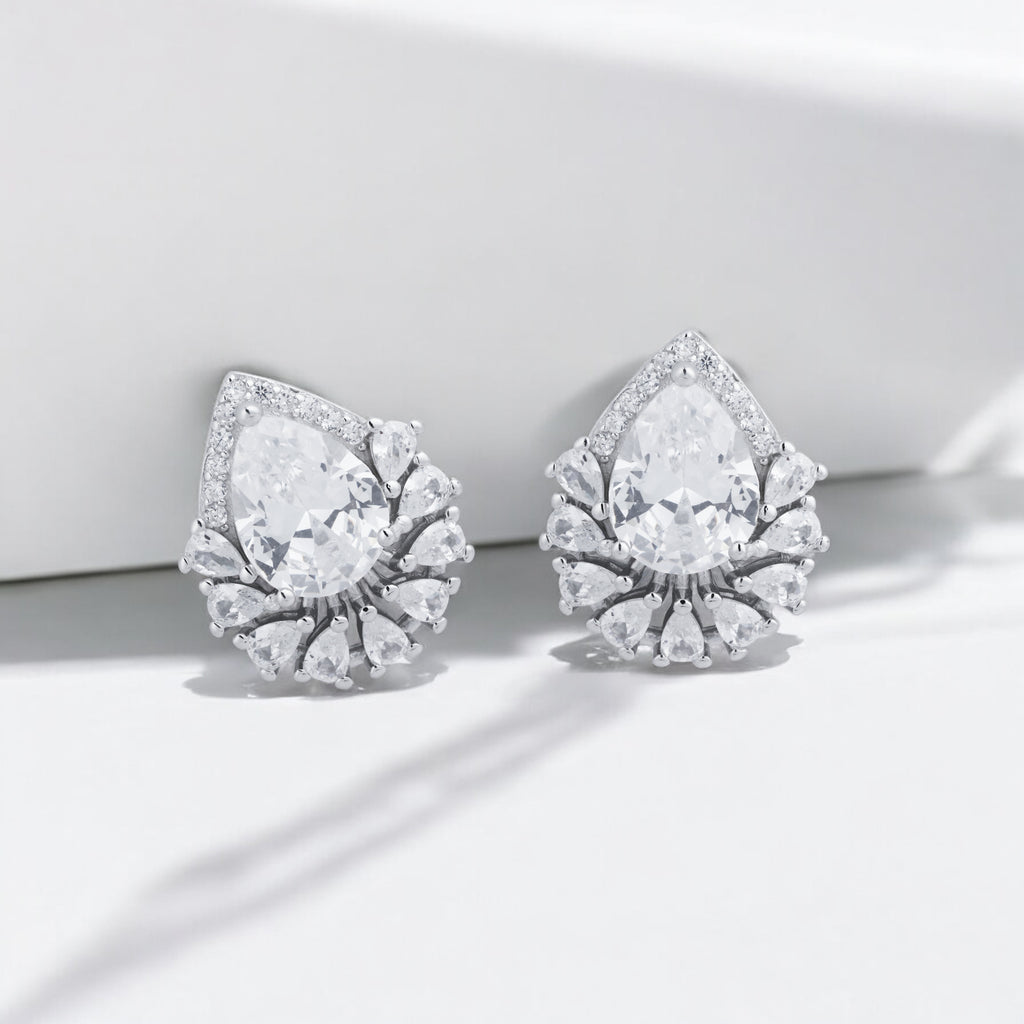 This beautiful set is made from hallmarked 925 sterling silver, featuring a delicate drop-shaped cluster design. Sparkling zircon stones are carefully arranged to create a soft, flowing look inspired by nature. The drop design adds a hint of movement and shine to your look.